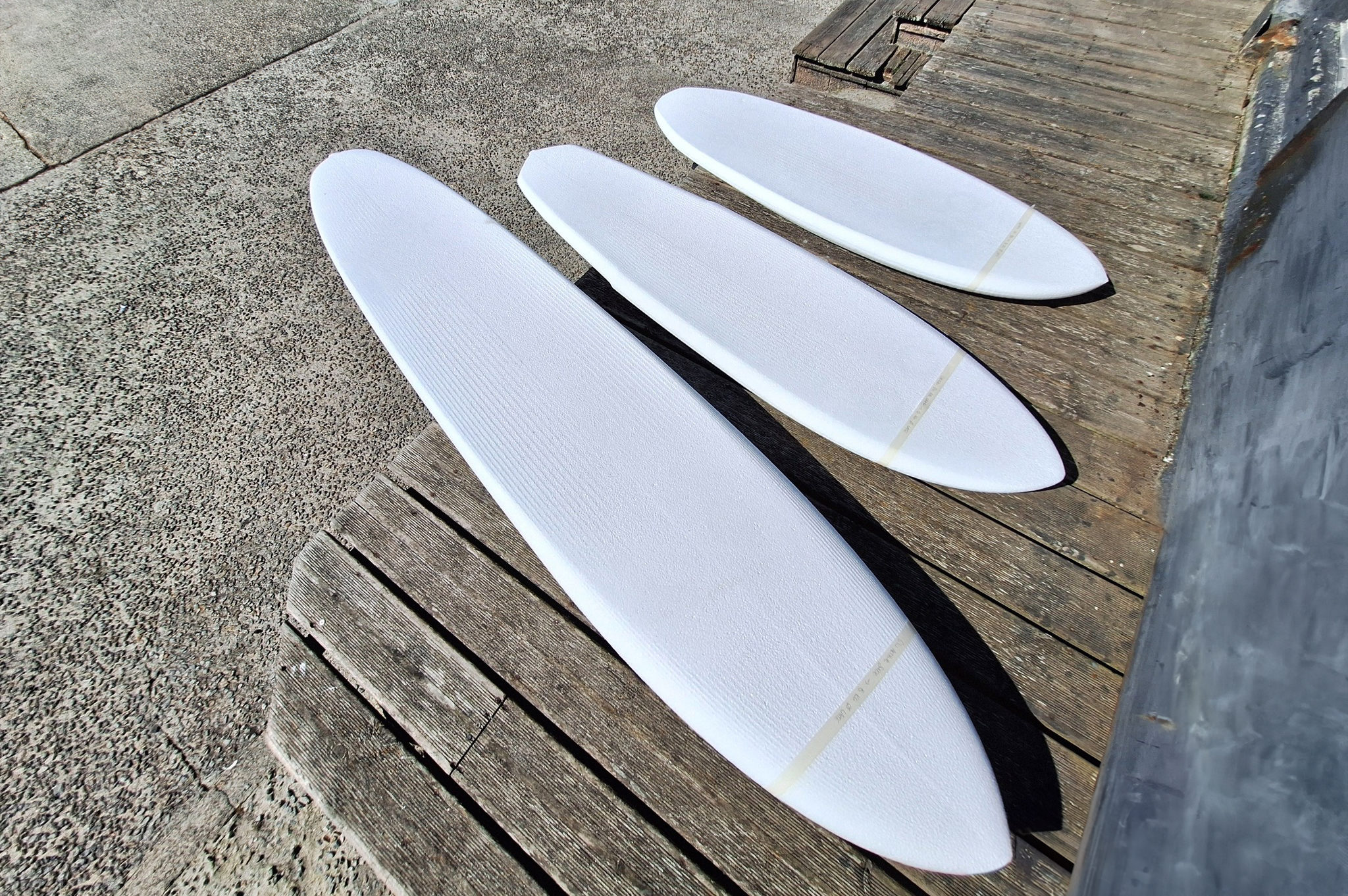 Nos planches sont toutes dotées d’une construction haut de gamme 100% carbone nommée ”Custom Carbon”. Chaque planche est constituée d’un pain de mousse en polystyrène expansé (EPS), recouvert d’une stratification en fibre de carbone et résine époxy, avec la présence de renforts en mousse haute densité sur les zones sensibles.
