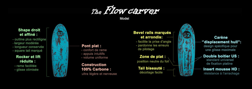 Nouveauté 2026, la Flow Carver a été pensée pour associer performance et accessibilité en parfait accord avec les tendances actuelles et l’évolution de la pratique surf-foil. Le niveau des riders augmente en effet chaque année, avec des trajectoires plus radicales, mais également et surtout plus de vitesse grâce à l’utilisation de foil de petite surface.