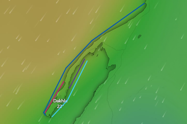 Le secteur de Dakhla offre un terrain de jeu incroyable. Le climat est très agréable avec une température de l’eau à 22°C, l’air à 25°C toute l’année et 300 jours de vent par an. La côte est constamment balayé par des vents N-NE de mars à octobre. Cette configuration est idéale pour le dw avec un vent qui longe la côte.